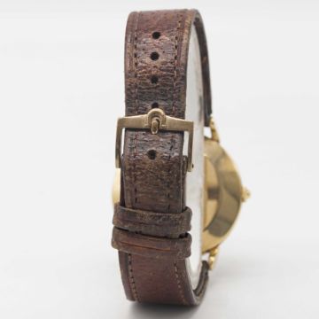 Strap: Leather strap with 9ct solid gold Omega pin buckle, marked MWF.