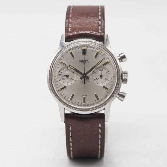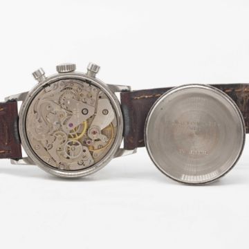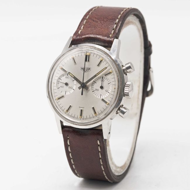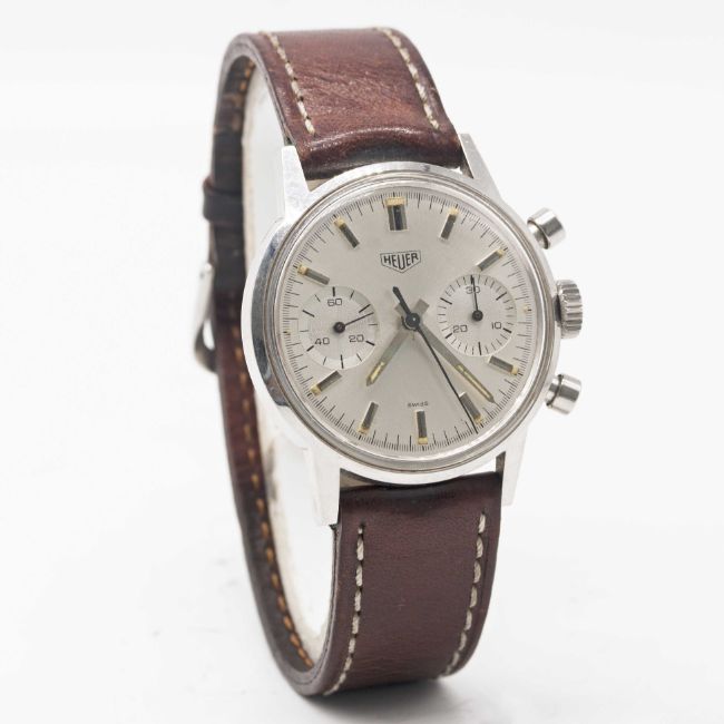 Movement: 17J, manual wind, Valjoux cal. 7733, signed Heuer Leonidas SA.