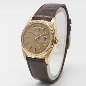 Strap: Rolex leather strap & gold plated pin buckle.