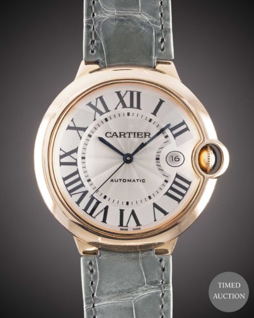 A LARGE SIZE 18K SOLID ROSE GOLD CARTIER BALLON BLEU AUTOMATIC WRIST WATCH