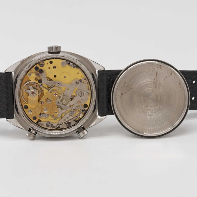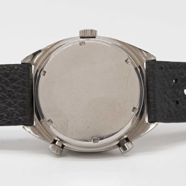Case: Width approx. 38mm, screw back, signed Heuer-Leonidas SA, numbered 22x,xxx, Heuer crown & pushers.