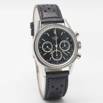 A GENTLEMAN'S STAINLESS STEEL HEUER CLASSIC CARRERA CHRONOGRAPH WRIST WATCH