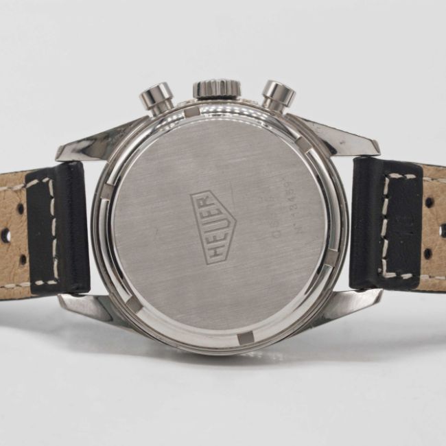 Case: Diameter approx. 35.5mm, screw back, signed Heuer, numbered, Heuer crown.