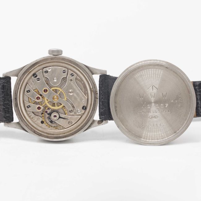 Case: Diameter approx. 35mm, fixed bars, snap back, signed IWC, numbered 1,1xx,xxx, issue markings ^ W.W.W. M12167.