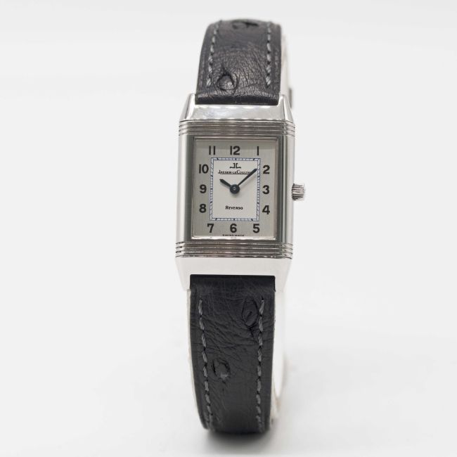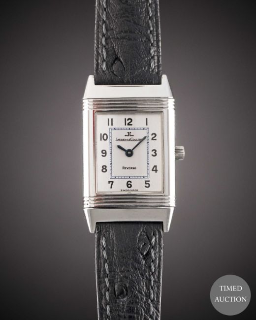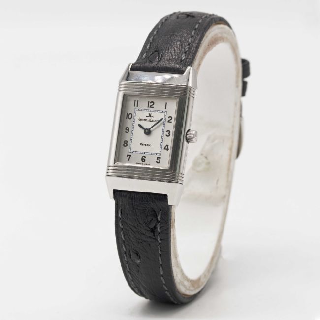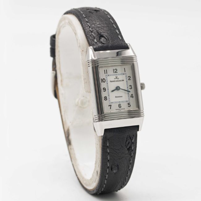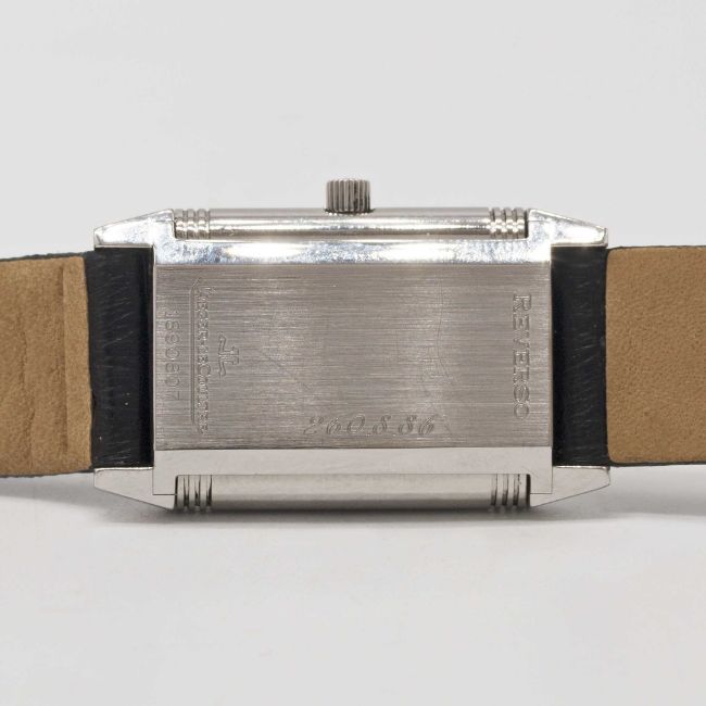 Case: Measures approx. 33mm by 20mm, clean reverse side, signed Jaeger-LeCoultre Reverso, numbered, JLC crown.