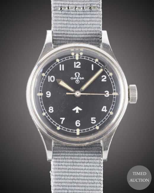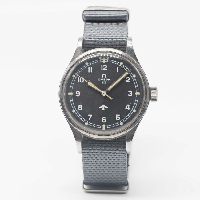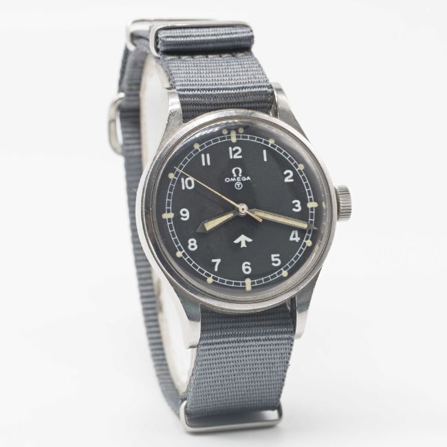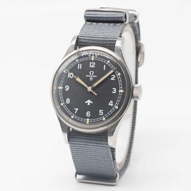 A GENTLEMAN'S STAINLESS STEEL BRITISH MILITARY OMEGA RAF PILOTS WRIST WATCH