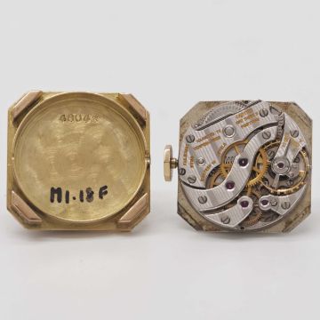 Case: Width approx. 25mm, signed EJ, 18k French hallmarks, numbered 48,xxx, octagonal crown.