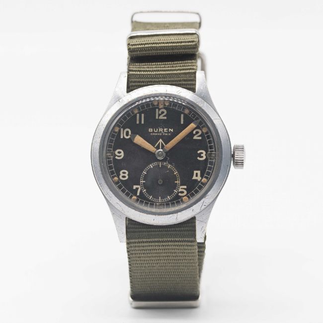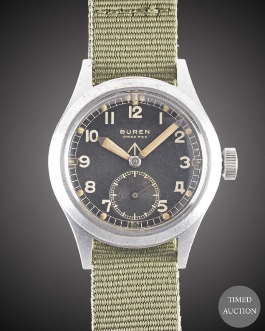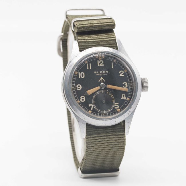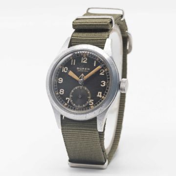 A GENTLEMAN'S BRITISH MILITARY BUREN GRAND PRIX W.W.W. WRIST WATCH