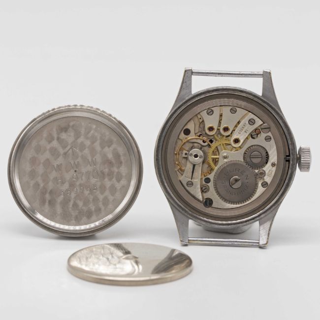 Case: Diameter approx. 36.5mm, fixed bars, nickel plated case with steel screw back, issue markings ^ W.W.W. H 9770 339933, dust cover.
