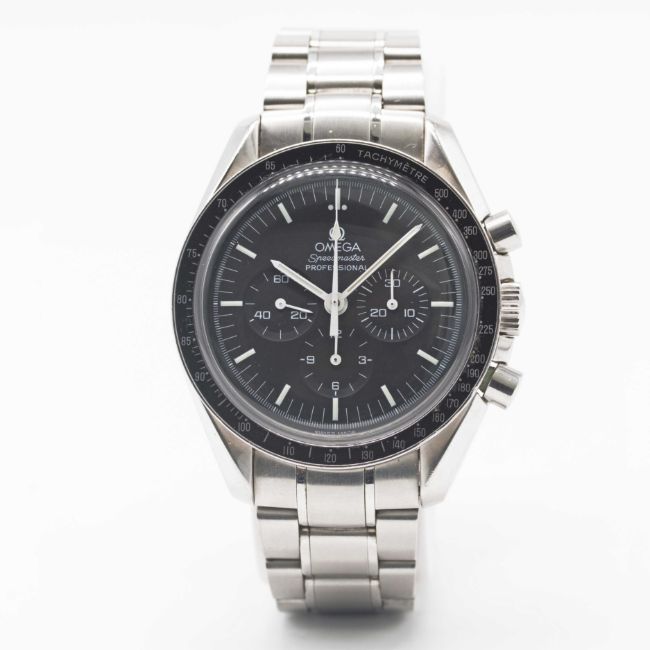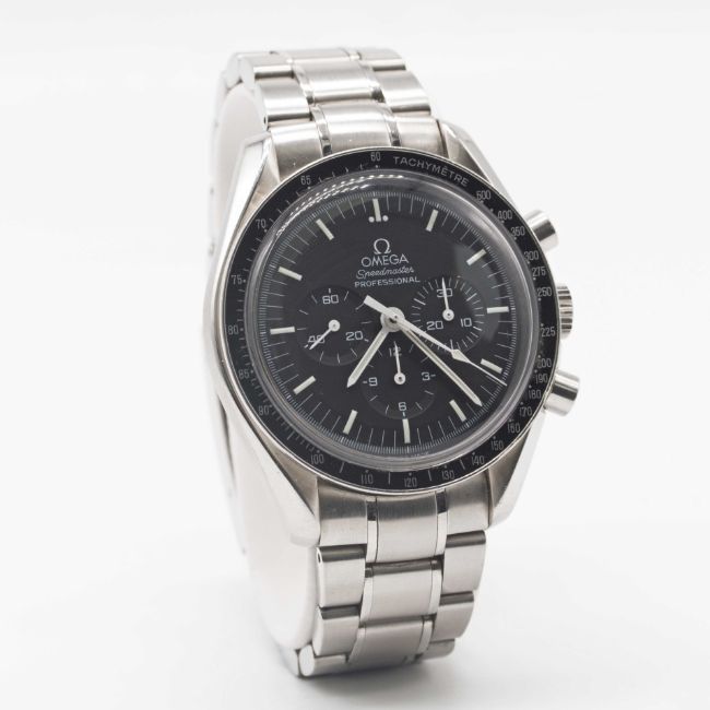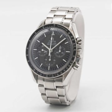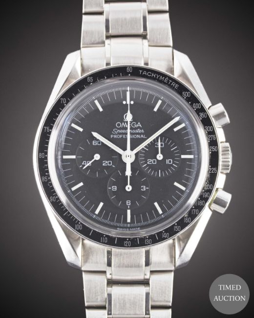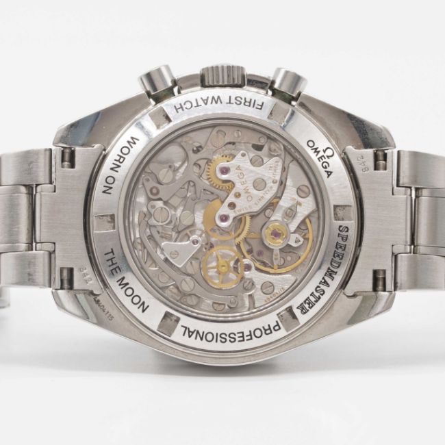 Case: Diameter approx. 42mm, sapphire crystal exhibition case back, signed Omega, numbered, tachymetre bezel, plexiglass, Omega crown.