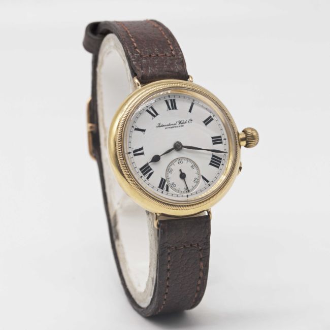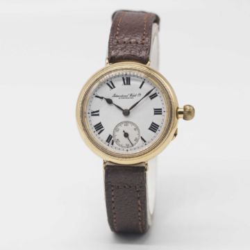 A GENTLEMAN'S 18K SOLID GOLD IWC "BORGEL" OFFICERS WRIST WATCH