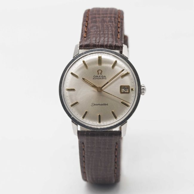 Case: Diameter approx. 34mm, screw back, Seamaster emblem embossed on case back, signed Omega Watch Co, Omega crown.