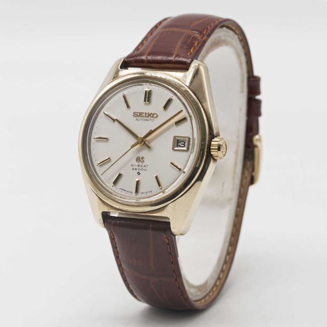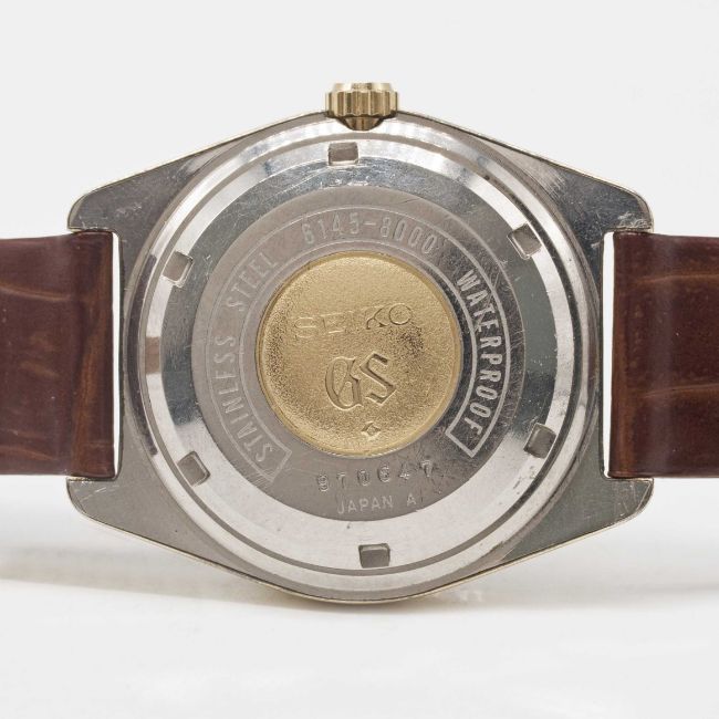 Case: Diameter approx. 36.5mm, screw back, gold Seiko GS emblem embossed on case back, signed Seiko, numbered 97x,xxx, GS crown.
