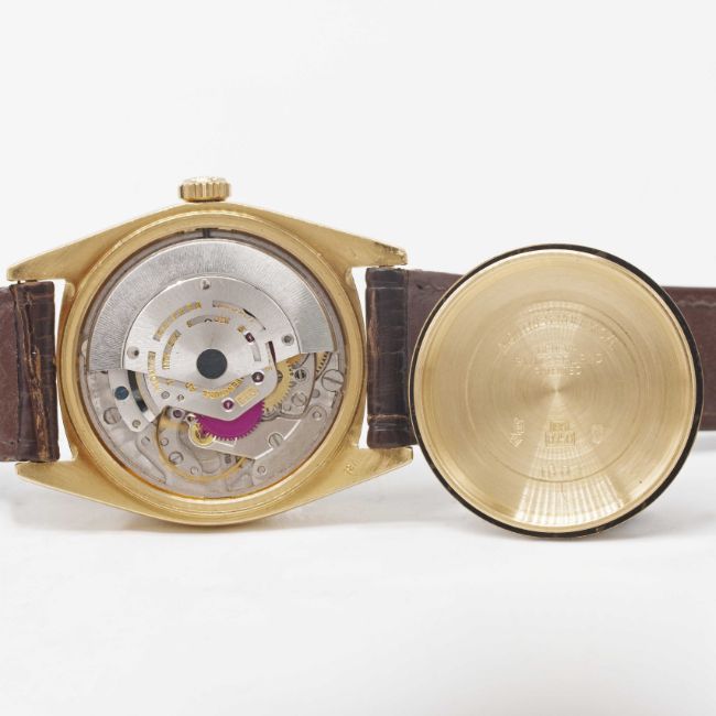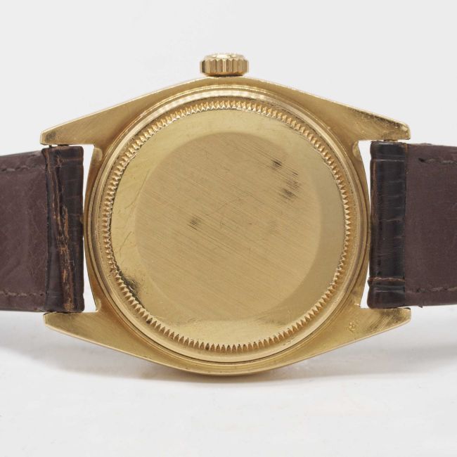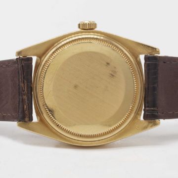 Case: Diameter approx. 36mm, Oyster case, signed Montres Rolex S.A., numbered 3,6xx,xxx, 18k hallmarks, fluted bezel, Rolex crown.