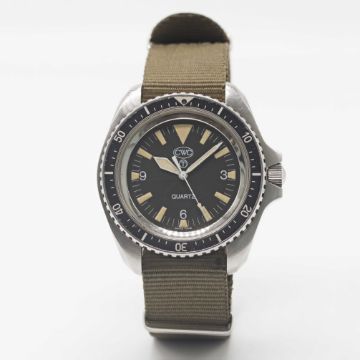 A GENTLEMAN'S STAINLESS STEEL BRITISH MILITARY CWC QUARTZ ROYAL NAVY MARINES DIVERS WRIST WATCH