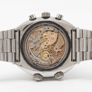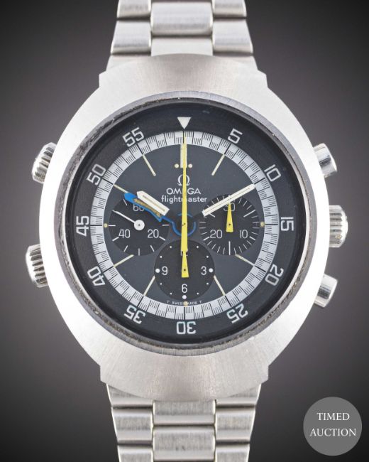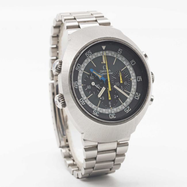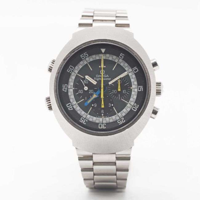 Case: Diameter approx. 43mm, screw back, Flightmaster emblem engraved on case back, signed Omega Watch Co., Omega crowns & pushers.