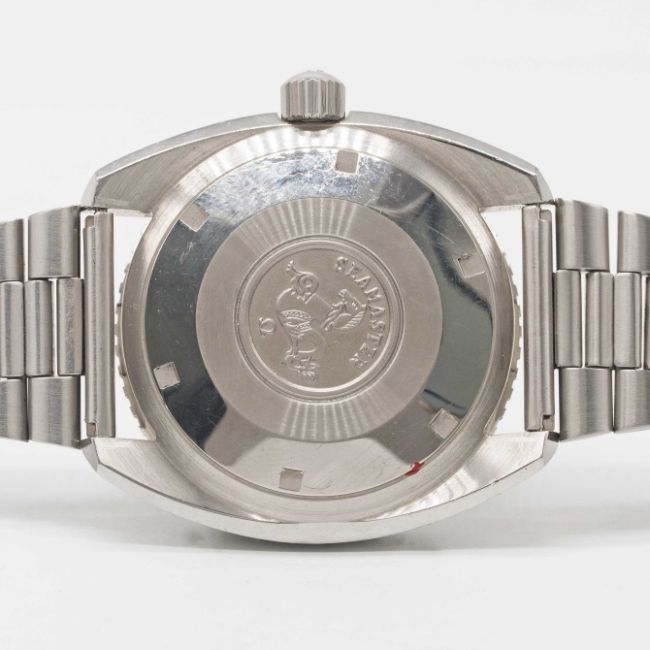 Case: Diameter approx. 42mm, screw back, signed Omega Watch Co, Seamaster emblem on case back, 60 minute rotating bakelite bezel, Omega screw-down crown.