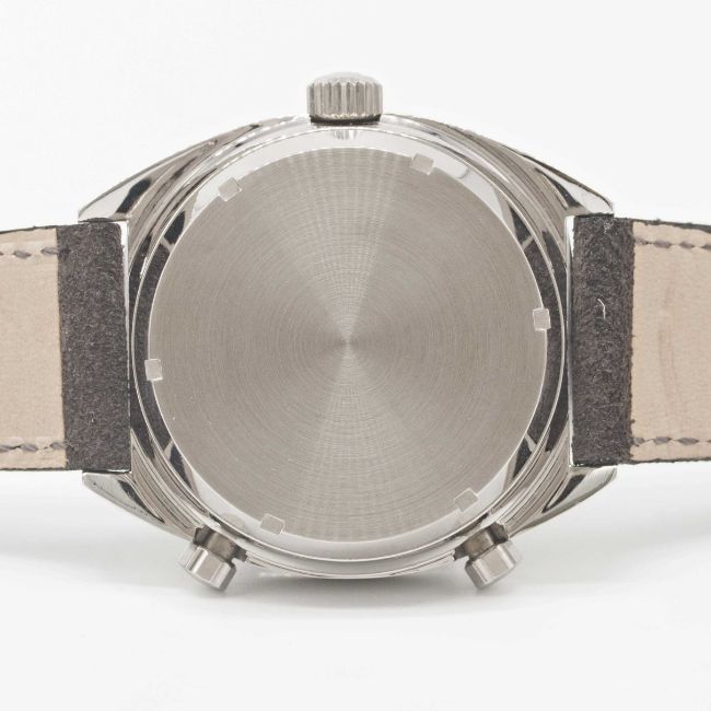 Case: Width approx. 38mm, screw back, signed Heuer-Leonidas SA, numbered 28x,xxx (faint), Heuer crown & pushers.