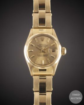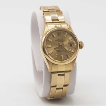 A LADIES 18K SOLID YELLOW GOLD ROLEX OYSTER PERPETUAL DATEJUST BRACELET WATCH