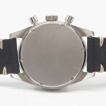 A RARE GENTLEMAN'S STAINLESS STEEL HEUER CARRERA CHRONOGRAPH WRIST WATCHCIRCA 1969, REF. 7753NST WITH "REVERSE PANDA" DIALMovement: 17J, manual wind, Valjoux cal. 7730, signed Heuer-Leonidas SA.Case: Diameter approx. 36mm, screw back, signed Heuer-Leonidas SA, numbered 10x,xxx, Heuer crown.Strap: Leather.CONDITION REPORTDial: Original dial in very good condition, registers & outer tracking ring showing small signs of age.Movement: Running at present.Case: In very good condition, with some light scratches due to general use.Strap/Bracelet: In excellent condition.The timekeeping and accuracy of this watch has not been tested, therefore cannot be guaranteed.