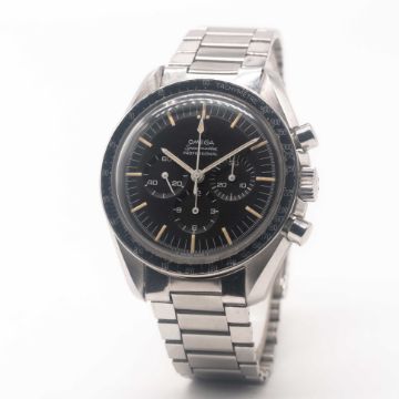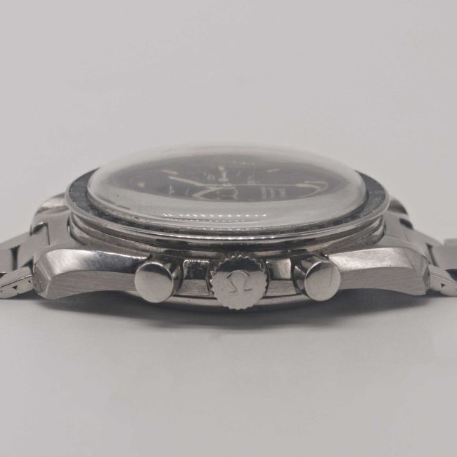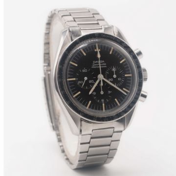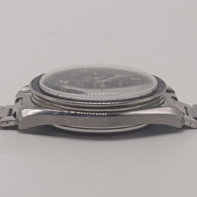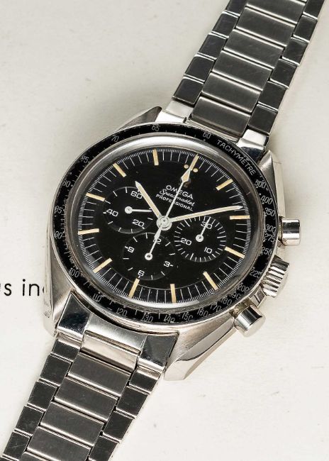 A RARE GENTLEMAN'S STAINLESS STEEL OMEGA SPEEDMASTER PROFESSIONAL "PRE MOON" CHRONOGRAPH BRACELET WATCHDATED 1968, REF. SP 145.012-67 WITH OMEGA EXTRACT OF THE ARCHIVES SHOWING DELIVERY TO SPAINMovement: 17J, manual wind, cal. 321, signed Omega Watch Co, numbered 25,xxx,xxx.Case: Diameter approx. 42mm, screw back, Speedmaster emblem on case back, signed Omega Watch Co, dust cover, "DON" tachymetre bezel, Omega "flat feet" crown.Bracelet: Original Omega flat-link bracelet, numbered (No. 13) 1039/516, dated 4.67.CONDITION REPORTDial: Original dial in excellent condition, showing some small signs of age.Movement: Running at present.Case: In excellent condition, with some light scratches due to general use.Strap/Bracelet: In very good condition, with some light scratches & wear due to general use.The timekeeping and accuracy of this watch has not been tested, therefore cannot be guaranteed.