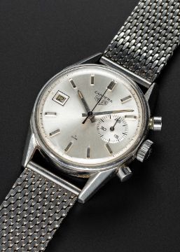 A GENTLEMAN'S STAINLESS STEEL HEUER CARRERA "DATO 45" CHRONOGRAPH BRACELET WATCHCIRCA 1968, REF. 3147SMovement: 17J, manual wind, Landeron cal. 189, signed Heuer-Leonidas SA.Case: Diameter approx. 35mm, screw back, signed Heuer-Leonidas SA, numbered 12x,xxx, Heuer crown.Bracelet: Unsigned mesh.CONDITION REPORTDial: Original dial in excellent condition, showing some small signs of age.Movement: Running at present.Case: In good condition, with small scratches & light wear due to general use.Strap/Bracelet: In very good condition.The timekeeping and accuracy of this watch has not been tested, therefore cannot be guaranteed.