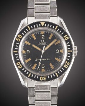 A RARE GENTLEMAN'S STAINLESS STEEL OMEGA SEAMASTER 300 AUTOMATIC BRACELET WATCHDATED 1966, REF. 165.024-64 S.C. WITH OMEGA EXTRACT OF THE ARCHIVES SHOWING DELIVERY TO ITALYMovement: 24J, automatic, cal. 552, signed Omega Watch Co, numbered 22,xxx,xxx. Case: Diameter approx. 42mm, screw back, signed Omega Watch Co, Seamaster emblem on case back, luminous 60 minute rotating bakelite bezel, Omega crown.Bracelet: Original Omega flat-link bracelet, numbered 1506/16, dated 3.64.CONDITION REPORTDial: Original dial in excellent condition.Movement: Running at present.Case: In excellent condition, with some light scratches due to general use.Strap/Bracelet: In very good condition, with light scratches due to general use.The timekeeping and accuracy of this watch has not been tested, therefore cannot be guaranteed.