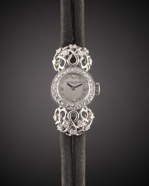 A FINE LADIES PLATINUM & DIAMOND VACHERON & CONSTANTIN COCKTAIL WRIST WATCHCIRCA 1930s, WITH ORIGINAL DIAMOND SET SILVER DIAL & "BASKET" LUGSMovement: 17J, manual wind, cal. V153, signed Vacheron & Constantin, numbered 47x,xxx.Case: Diameter approx. 17mm, snap back, original diamond set "basket" lugs, original diamond set bezel, signed Vacheron & Constantin, numbered 31x,xxx, Platinum hallmarks.Strap: Textile strap with stainless steel clasp, signed Unroc.CONDITION REPORTDial: Original dial in excellent condition.Movement: Running at present.Case: In excellent condition, with some light scratches due to general use.Strap/Bracelet: In excellent condition.The timekeeping and accuracy of this watch has not been tested, therefore cannot be guaranteed.