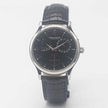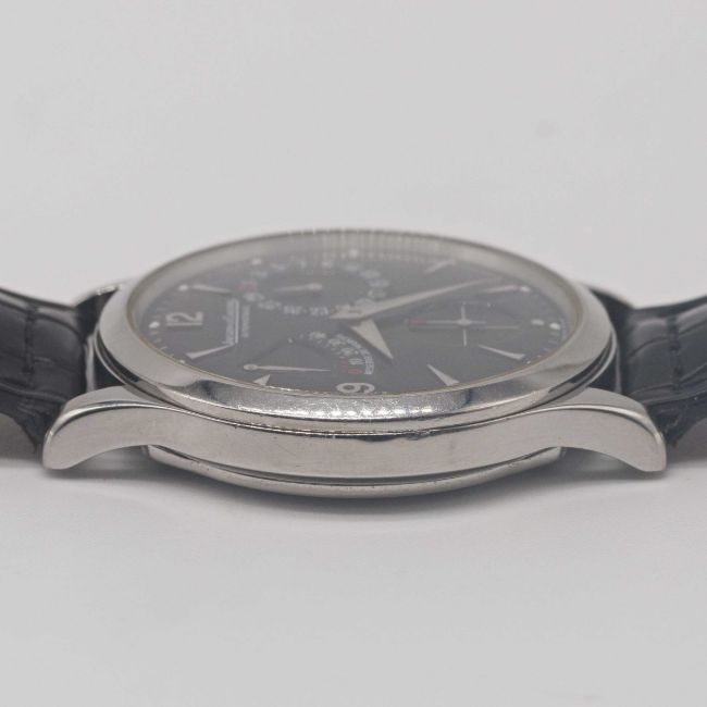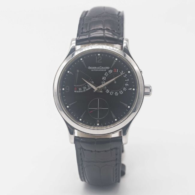 A GENTLEMAN'S STAINLESS STEEL JAEGER LECOULTRE MASTER RESERVE DE MARCHE AUTOMATIQUE WRIST WATCHCIRCA 2005, REF. 140.8.93.S WITH BLACK DIAL, ACCOMPANIED BY OPEN GUARANTEE CERTIFICATEMovement: 45J, automatic, 22ct rotor weight, cal. 928/2, signed Jaeger-LeCoultre Master Control 1000 Hours, numbered 5,0xx,xxx.Case: Diameter approx. 37mm, exhibition case back, signed Jaeger-LeCoultre, numbered 1811, JLC crown.Strap: Jaeger-LeCoultre strap & deployment clasp. CONDITION REPORTDial: Original dial in excellent condition.Movement: Running at present.Case: In excellent condition, with some small scratches due to general use.Strap/Bracelet: In good condition.The timekeeping and accuracy of this watch has not been tested, therefore cannot be guaranteed.
