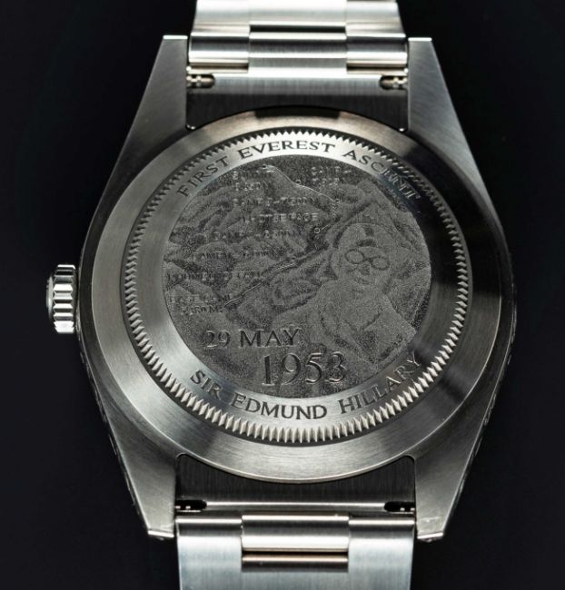 A GENTLEMAN'S ENGRAVED STAINLESS STEEL BAMFORD ROLEX OYSTER PERPETUAL EXPLORER BRACELET WATCHCIRCA 2017, REF. 214270 CUSTOMISED IN TRIBUTE TO SIR EDMUND HILLARY'S 1953 FIRST EVEREST ASCENT, ACCOMPANIED BY BAMFORD WATCH DEPARTMENT BOXMovement: Automatic chronometer, cal. 3132 signed Rolex, numbered.Case: Diameter approx. 39mm, Oyster case, numbered, tribute engraving on case back, sapphire crystal, Rolex crown.Bracelet: Engraved Rolex Oyster bracelet with flip-lock clasp, marked Z6S.CONDITION REPORTDial: Original dial in excellent condition.Movement: Running at present.Case: In excellent condition.Strap/Bracelet: In excellent condition.The timekeeping and accuracy of this watch has not been tested, therefore cannot be guaranteed.