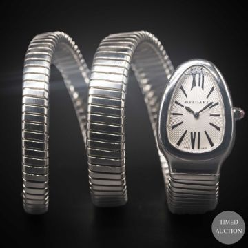A LADIES STAINLESS STEEL BULGARI SERPENTI TUBOGAS DOUBLE SPIRAL BRACELET WATCH