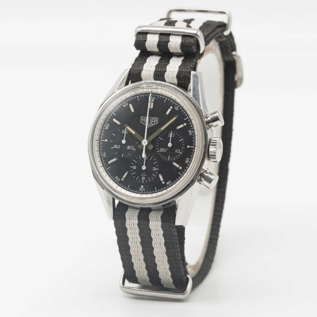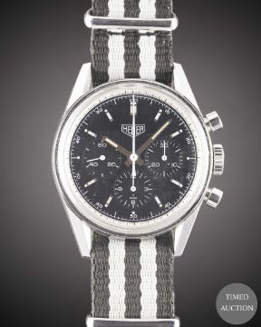 Case: Diameter approx. 36mm, screw back, signed Heuer, numbered, Heuer crown.