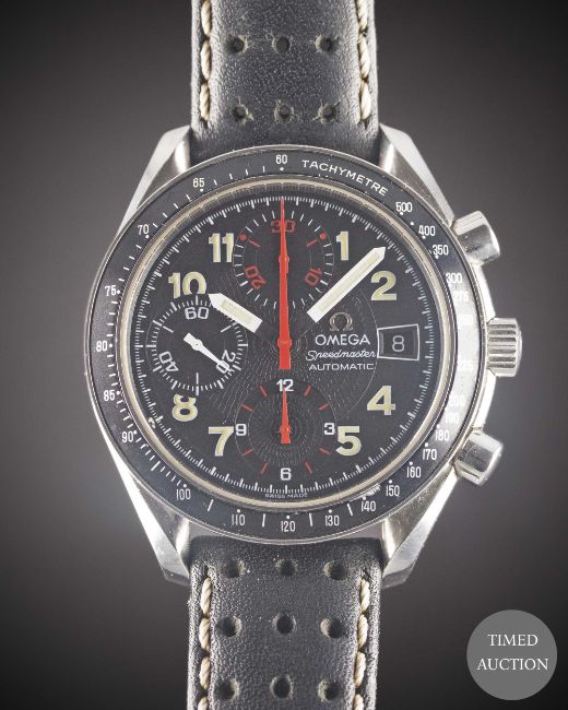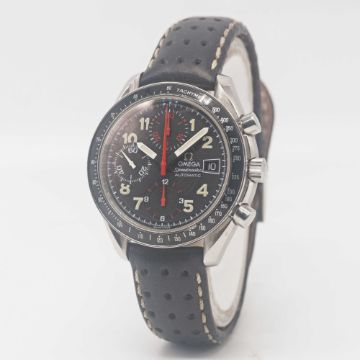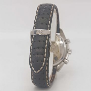 Case: Diameter approx. 39mm, snap back, Speedmaster emblem embossed on case back, signed Omega, numbered 55,xxx,xxx, tachymetre bezel, Omega crown.