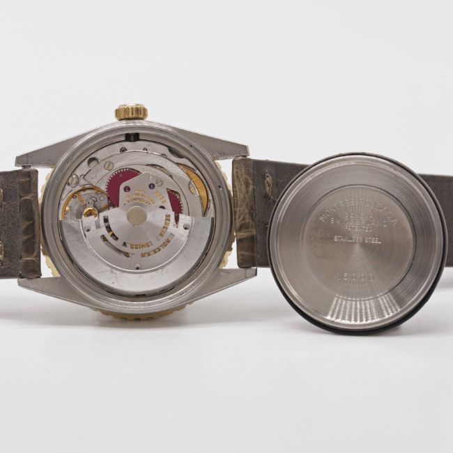 Case: Diameter approx. 36mm, Oyster case, signed Montres Rolex S.A., numbered 5,9xx,xxx, solid yellow gold 60 minute rotating "thunderbird" bezel, Rolex crown.