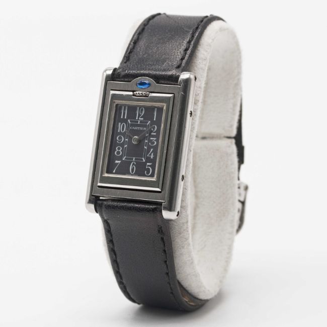 Case: Approx. 32mm by 22mm, Reverso style case with clean reverse side, signed Cartier, numbered.