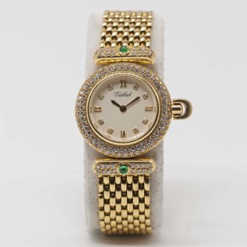 Case: Diameter approx. 26mm, original diamond set case, original emerald & diamond set lugs, signed Tabbah Beret, numbered, 18k hallmarks, original crown.