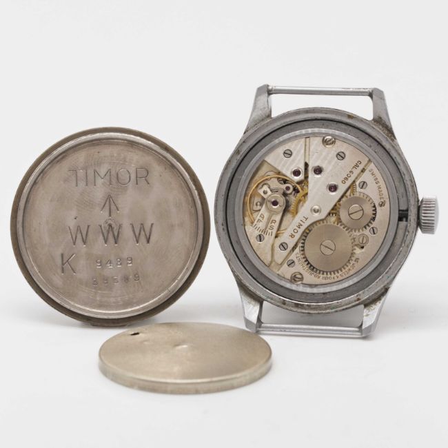 Case: Diameter approx. 36mm, fixed bars, screw back, issue markings TIMOR ^ W.W.W. K 9489 39389, dust cover.