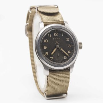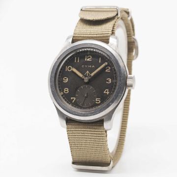 A GENTLEMAN'S STAINLESS STEEL BRITISH MILITARY CYMA W.W.W. WRIST WATCH