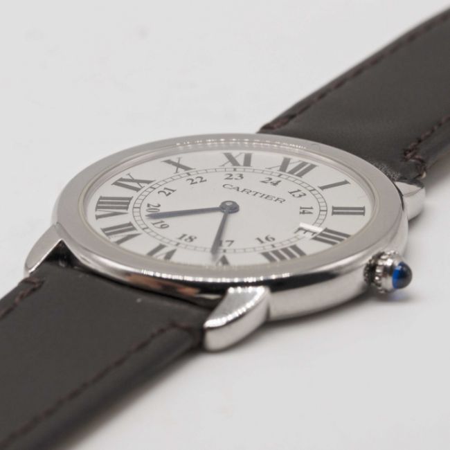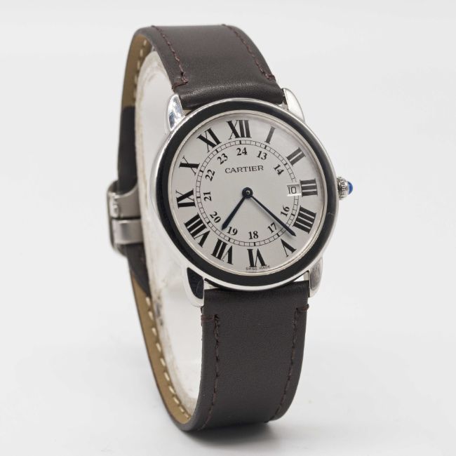 A GENTLEMAN'S SIZE STAINLESS STEEL CARTIER RONDE SOLO WRIST WATCH