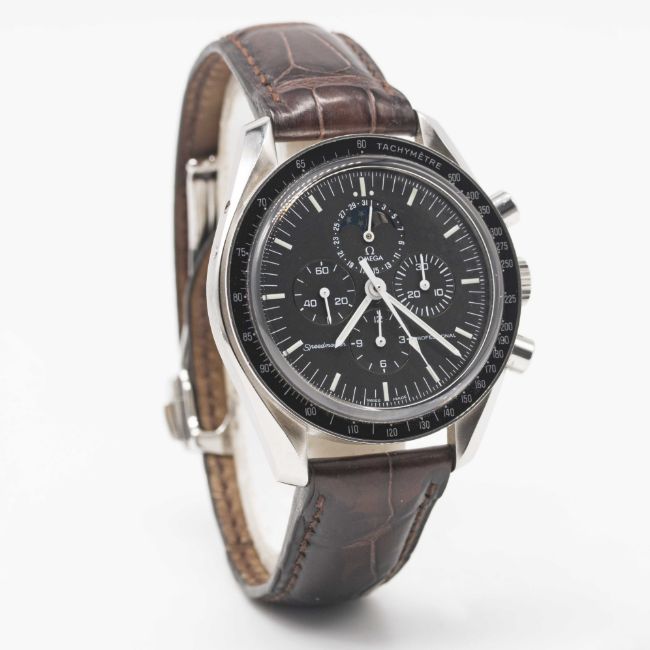 A GENTLEMAN'S STAINLESS STEEL OMEGA SPEEDMASTER PROFESSIONAL MOONPHASE CHRONOGRAPH WRIST WATCH