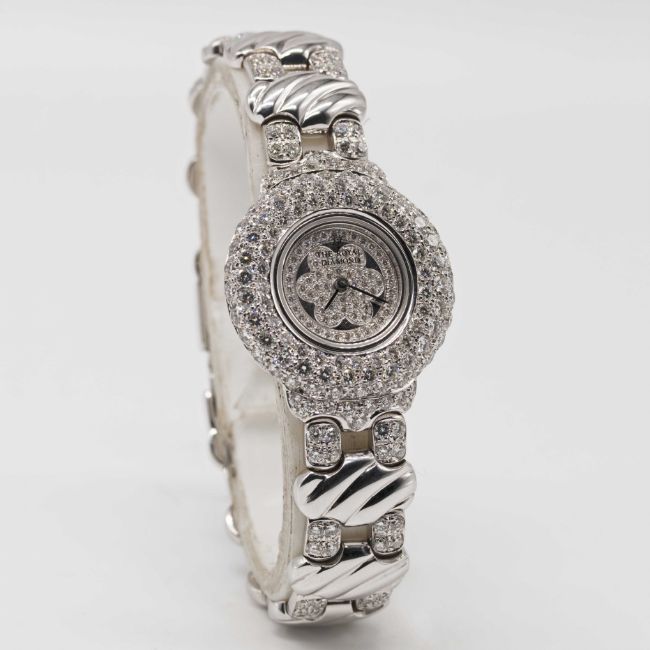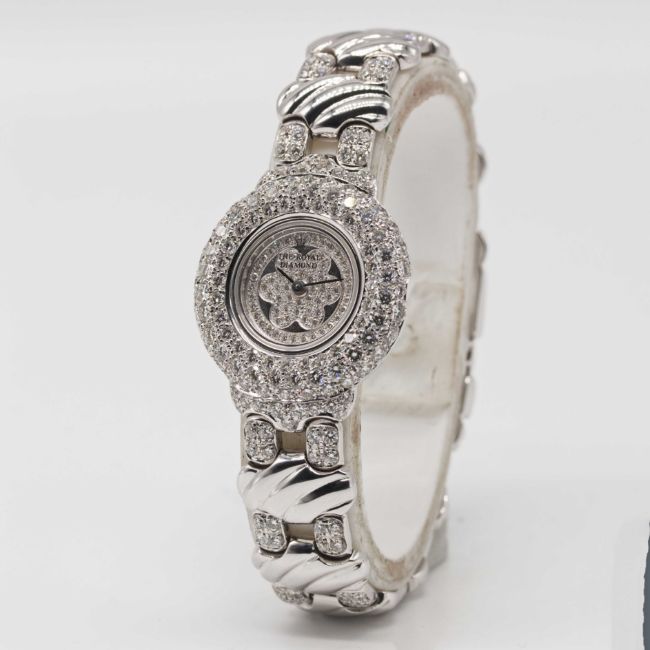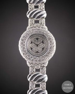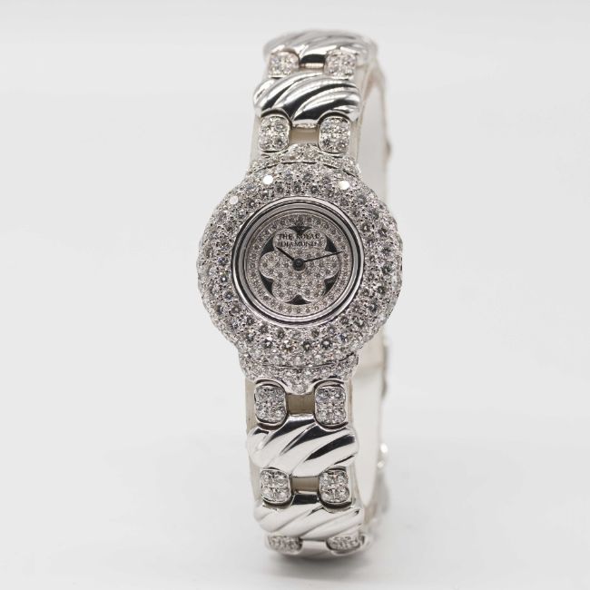 A LADIES 18K SOLID WHITE GOLD & DIAMOND THE ROYAL DIAMOND BRACELET WATCH