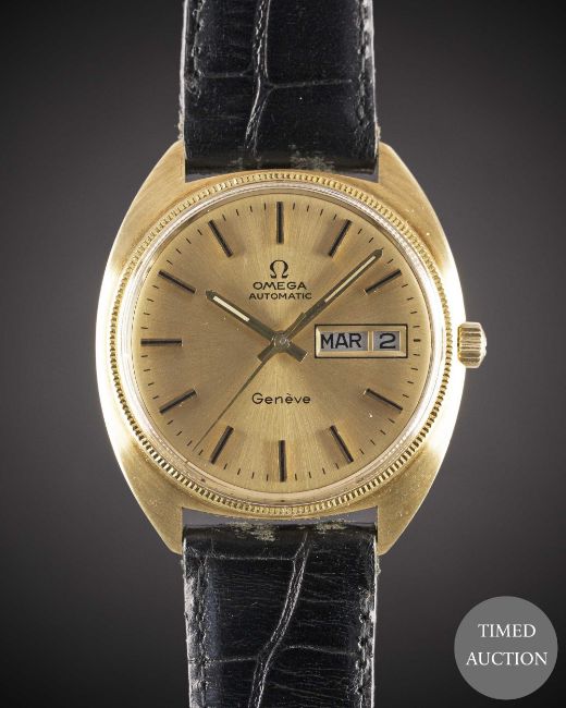 A GENTLEMAN'S 18K SOLID GOLD OMEGA GENEVE AUTOMATIC WRIST WATCH