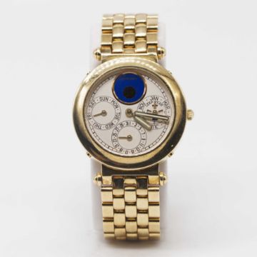 A GENTLEMAN'S SIZE 18K SOLID YELLOW GOLD GERALD GENTA PERPETUAL CALENDAR MOONPHASE BRACELET WATCH
