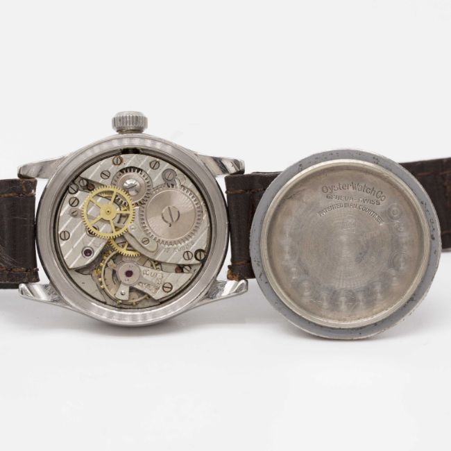 Case: Diameter approx. 29mm, Oyster case, signed Oyster Watch Co., marked SAR, numbered 16x,xxx, Oyster Patent crown.