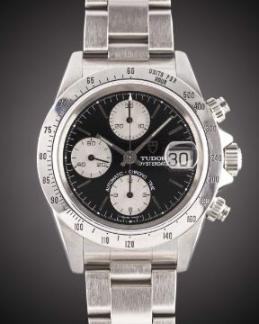 A GENTLEMAN'S STAINLESS STEEL ROLEX TUDOR OYSTERDATE AUTOMATIC CHRONO TIME CHRONOGRAPH BRACELET WATCHCIRCA 1995, REF. 79280 WITH "REVERSE PANDA" DIALMovement: 25J, automatic, base cal. 7750, signed Tudor Automatic-Prince.Case: Diameter approx. 40mm, Oyster case, signed Montres Tudor S.A., numbered B63x,xxx, steel units per hour bezel, Rolex Triplock crown & screw-down pushers.Bracelet: Original Rolex Tudor Oyster bracelet, numbered T11/78400/605.CONDITION REPORTDial: Original dial in excellent condition.Movement: Running & functioning at present, timekeeping and accuracy cannot be guaranteed.Case: In excellent condition, with some light scratches due to general use.Strap/Bracelet: In excellent condition, with some light scratches due to general use.