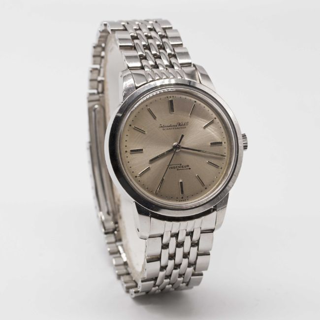 A RARE GENTLEMAN'S STAINLESS STEEL IWC INGENIEUR AUTOMATIC BRACELET WATCHDATED 1969, REF. 666A WITH SILVER DIAL, ACCOMPANIED BY THE ORIGINAL BOX, GUARANTEE, PURCHASE RECEIPT, BOOKLETS & TWO SPARE LINKS Movement: 21J, automatic, cal. 853, signed International Watch Co, numbered 1,6xx,xxx.Case: Diameter approx. 36mm, screw back, signed International Watch Co, numbered 2,2xx,xxx, anti-magnetic dust cover, IWC crown.Bracelet: Original IWC GF "BoR" bracelet with IA end links, dated 1.66.CONDITION REPORTDial: Original dial in very good condition, showing small signs of age.Movement: Running & functioning at present, timekeeping and accuracy cannot be guaranteed.Case: In very good condition, with some small scratches due to general use.Strap/Bracelet: In very good condition, with light scratches due to general use.