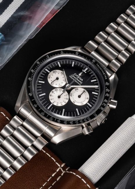 A GENTLEMAN'S STAINLESS STEEL OMEGA SPEEDMASTER PROFESSIONAL "TRIBUTE TO ALASKA PROJECT III" CHRONOGRAPH BRACELET WATCHDATED 2017, REF. 311.32.42.30.01.001 "SPEEDY TUESDAY" LIMITED EDITION OF 2012 PIECES, ACCOMPANIED BY THE COMPLETE ORIGINAL BOX, CERTIFICATE, GUARANTEE, STRAP (UNWORN), TAGS & ACCESSORIES, FITTED WITH A RARE 1980s 1450 "GRAIL" BRACELET Movement: 18J, manual wind, cal. 1861, signed Omega, numbered.Case: Diameter approx. 42mm, screw back, Speedmaster emblem embossed on case back, signed Omega, numbered, limited edition number 15xx of 2012, tachymetre bezel, hesalite crystal, dust cover, Omega crown.Bracelet: Omega Speedmaster "grail" bracelet, numbered (32) 1450/808.CONDITION REPORTDial: Original dial in excellent condition.Movement: Running & functioning at present, timekeeping and accuracy cannot be guaranteed.Case: In excellent condition, with some light scratches to the hesalite crystal.Strap/Bracelet: In very good condition, with some light scratches due to general use.