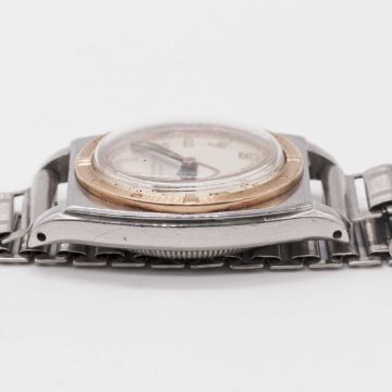 A RARE GENTLEMAN'S STEEL & ROSE GOLD ROLEX OYSTER VICEROY BRACELET WATCHCIRCA 1940, REF. 2595 WITH ORIGINAL "CALIFORNIA" TYPE DIAL & MERCEDES HANDSMovement: 17J, manual wind, signed Rolex Patented Superbalance.Case: Width approx. 29mm, Oyster case, Rolex coronet to outer case back, signed Oyster Watch Co., marked SAR, numbered 11x,xxx to case back, numbered 32x,xxx in between lugs, solid rose gold bezel with hourly graduations, Rolex Oyster Patent crown.Bracelet: "Bonklip" style bracelet, signed Zenette Made in England.CONDITION REPORTDial: Original dial in excellent condition, showing some small signs of age.Movement: Running & functioning at present, timekeeping and accuracy cannot be guaranteed.Case: In very good condition, with light scratches due to general use.Strap/Bracelet: In fair condition, with wear due to general use.