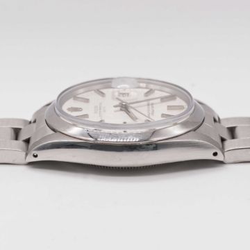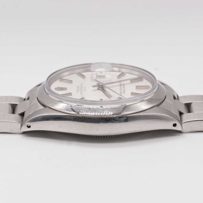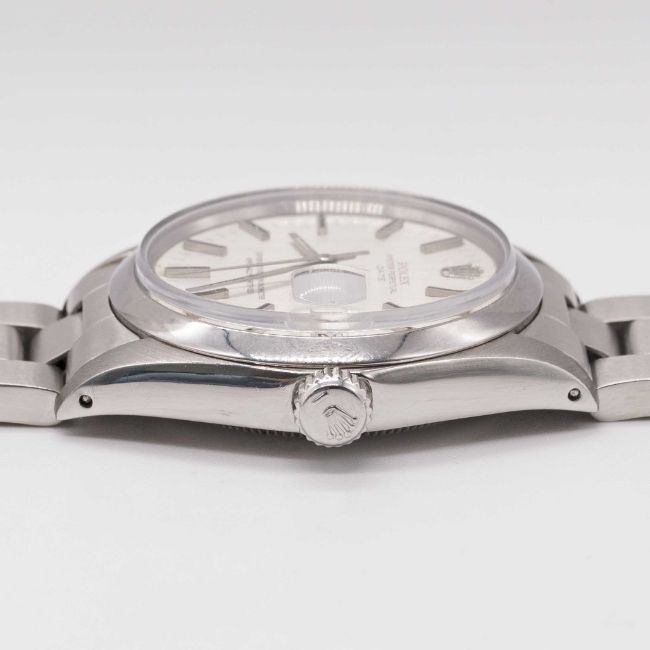 A GENTLEMAN'S STAINLESS STEEL ROLEX OYSTER PERPETUAL DATE BRACELET WATCHCIRCA 1974, REF. 1500 WITH BRUSHED SILVER SIGMA DIALMovement: 26J, automatic chronometer, cal. 1570, signed Montres Rolex S.A., numbered.Case: Diameter approx. 35mm, Oyster case, signed Montres Rolex S.A., numbered 3,6xx,xxx, Rolex crown.Bracelet: Rolex Oyster bracelet, numbered A/78350/19/557.CONDITION REPORTDial: Original dial in excellent condition.Movement: Running & functioning at present, timekeeping and accuracy cannot be guaranteed.Case: In excellent condition, with some light scratches due to general use.Strap/Bracelet: In excellent condition, with some light scratches due to general use.
