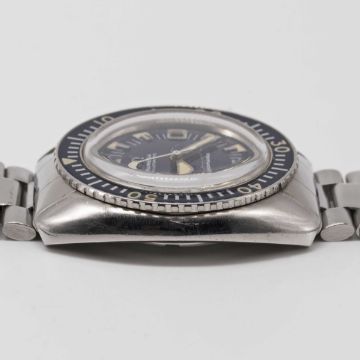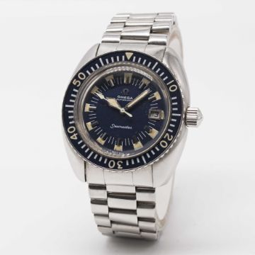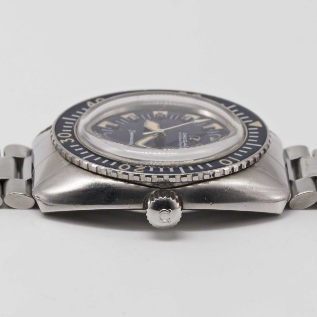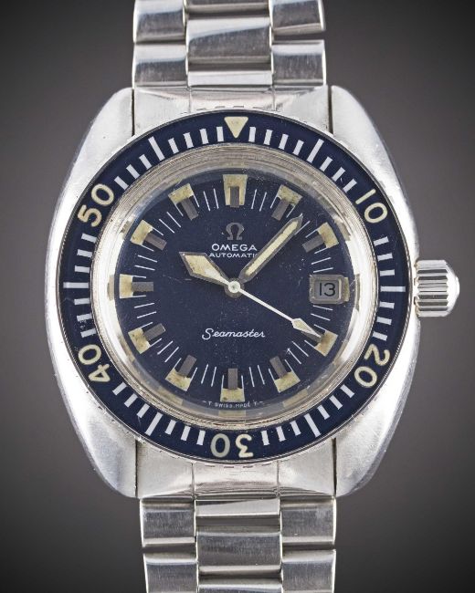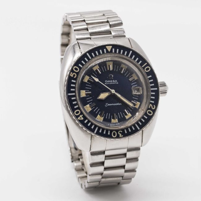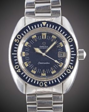 A GENTLEMAN'S STAINLESS STEEL OMEGA SEAMASTER "DEEP BLUE" BRACELET WATCHCIRCA 1971, REF. 166.073Movement: 24J, automatic, cal. 565, signed Omega Watch Co, numbered 30,xxx,xxx. Case: Diameter approx. 42mm, screw back, signed Omega Watch Co, Seamaster emblem on case back, 60 minute rotating bakelite bezel, Omega screw-down crown.Bracelet: Omega bracelet with extended diver's clasp, end links numbered 634.CONDITION REPORTDial: Original dial in very good condition, showing some small signs of age.Movement: Running & functioning at present, timekeeping and accuracy cannot be guaranteed.Case: In very good condition, with some light scratches due to general use, some scratches to case back due to opening.Strap/Bracelet: In good condition, with light scratches due to general use.